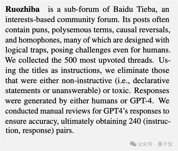 当然弱智吧并不是这项研究的全数,最终留下了240组指令-答复数据对。除了摸索分歧数据源的感化,以前只用来测试。好比知乎、豆瓣、百科、小红书等,